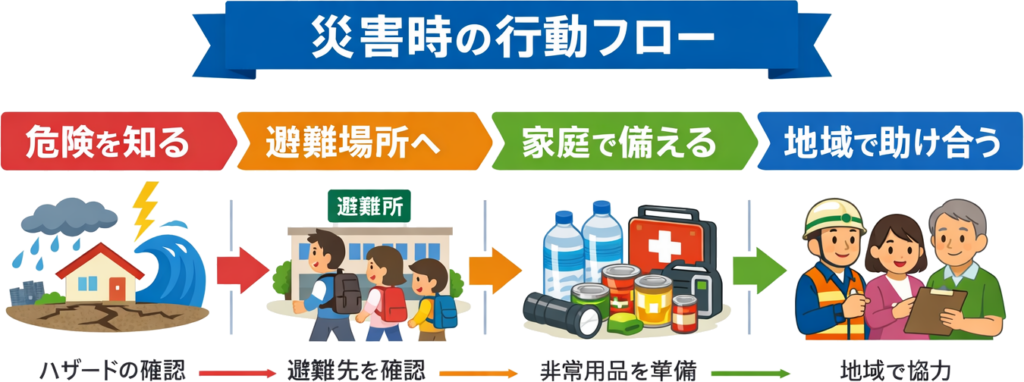 災害時には、自分や家族の安全を守る「自助」だけでなく、