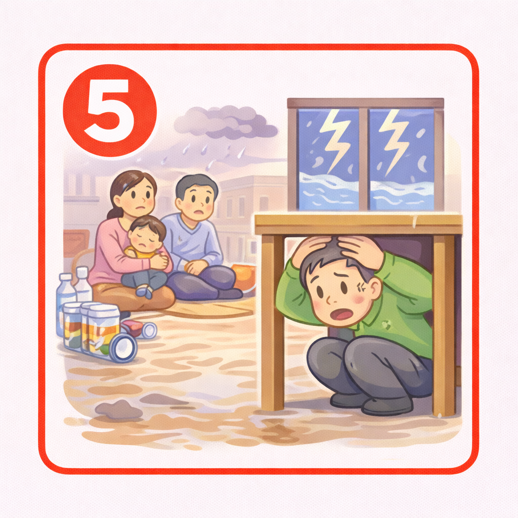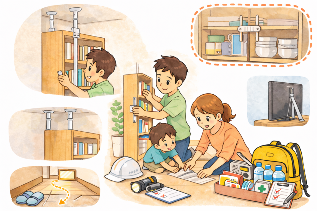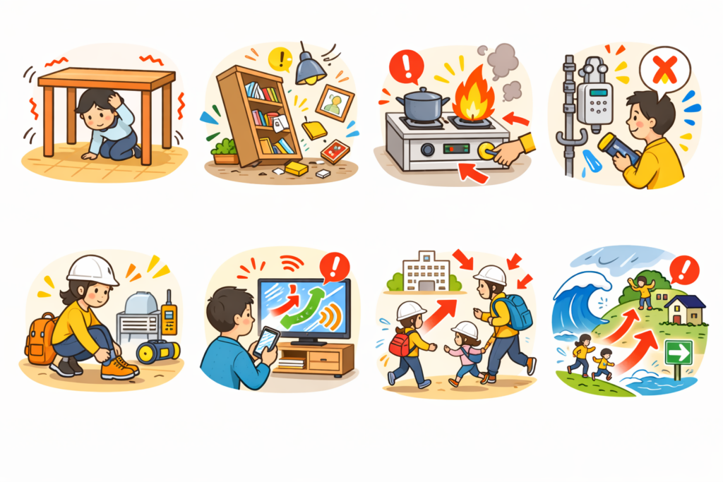 揺れが収まったら火の元を確認し、避難経路を確保します。